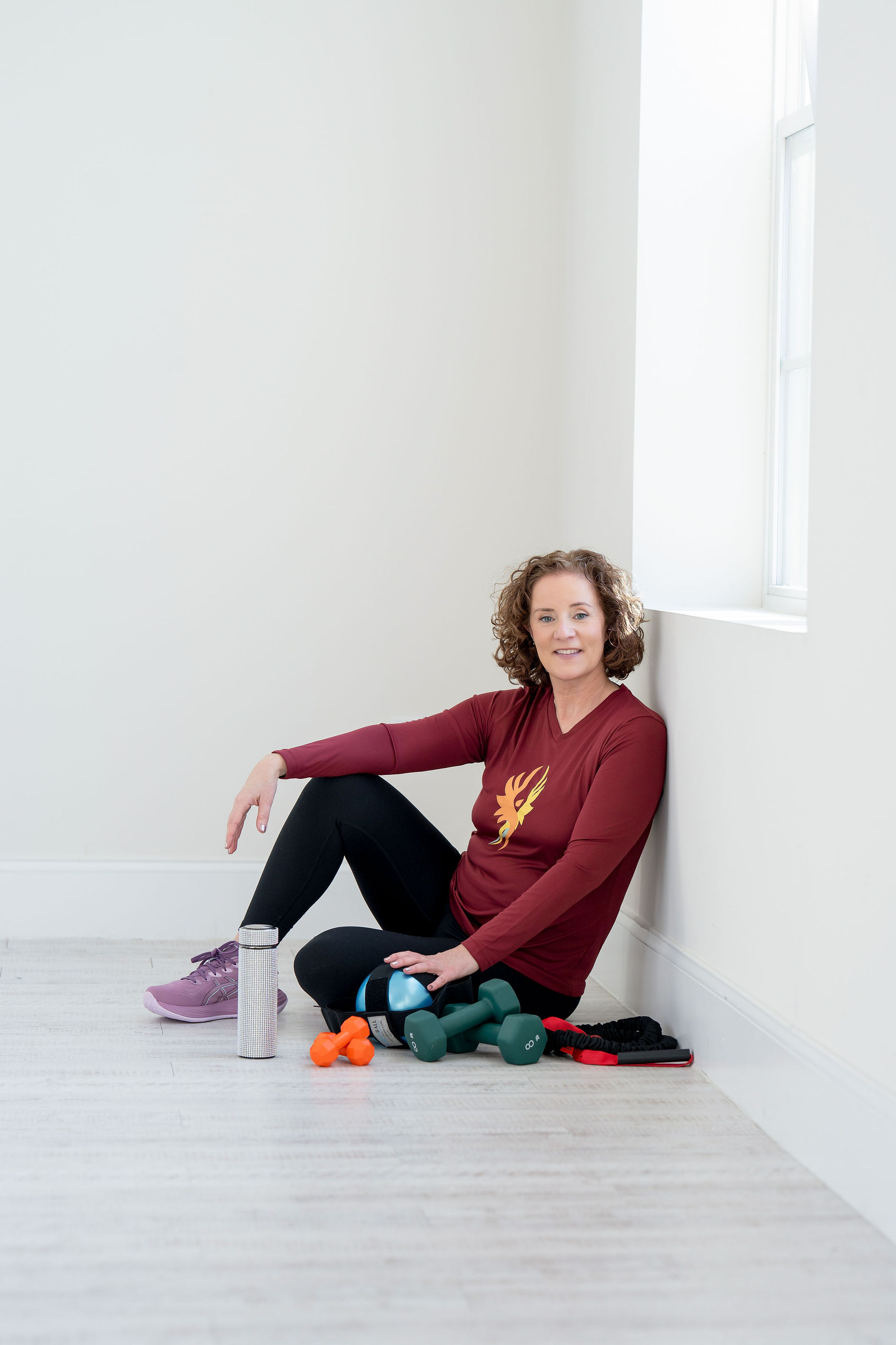 For our class, we use dumbbells, a resistance band and a Pilates style ball. That's everything! Plus, if you would like to purchase the resistance band or Pilates ball from me, I would be happy to get you started.